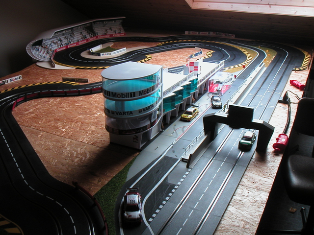 hallo also die bahn ist echt super schaut richtig geil aus las dir ruhig zeit ist ja auch nur eine hobby aber weiter so die bahn ist wille gruss cris69 p.s ein kleiner tipp wenn du willst kannst du licht in die boxengasse machen kommt richtig gut rüber die lampen bekommst du bei conrad.