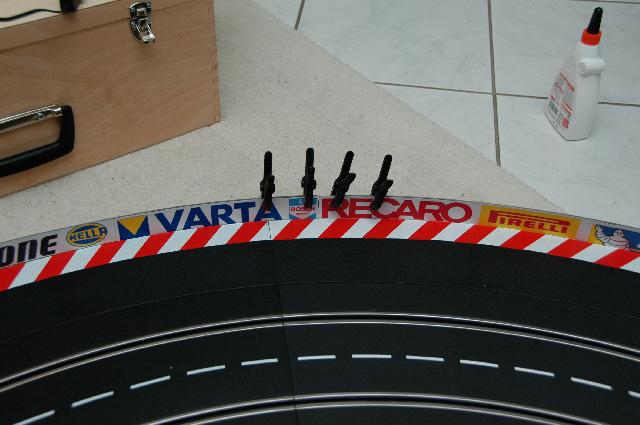 Angenehmer Nebeneffekt: Wenn die Bahn bzw. die Kurve in ihre vier Hauptsegmente zerlegt wird, kann der Zaun aus seinen Löchern gezogen und einfach zusammengerollt werden.