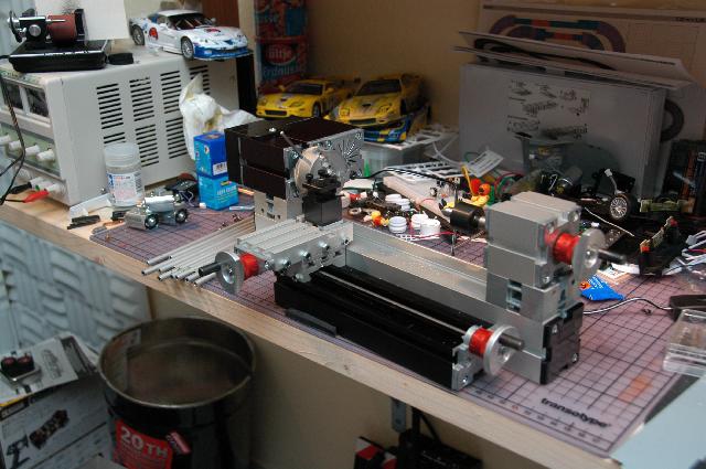 Damit der Zaun auch an seinem Platz bleibt, habe ich mir als Befestigung etwas einfallen lassen. Ich konnte nun schlecht, den Zaun an seine Masten kleben. Daher habe ich die Masten auf der Drehbank mit jeweils drei Nuten versehen. In diesen wird nun der Silberdraht auf Höhe gehalten, der den Zaun