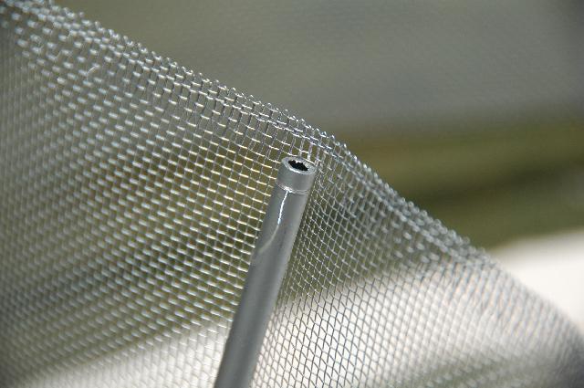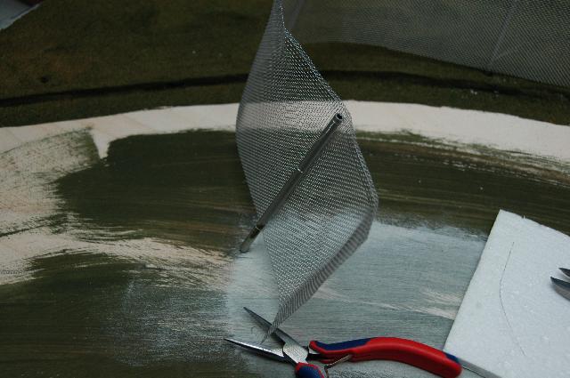 Den Maschendraht mit einem Rastermaß von 1mm - ebenfalls aus dem erwähnten Modellbaufachhandel - ist mit einer robusten Schere abgelängt und umgebördelt.