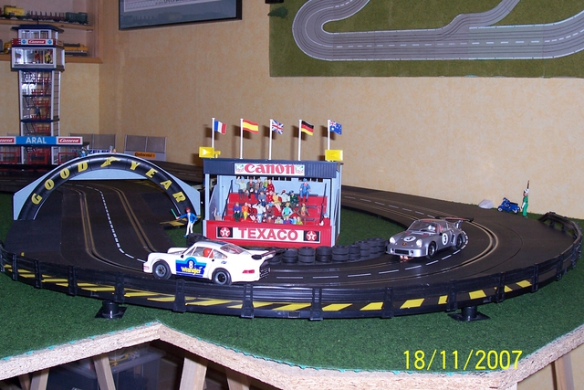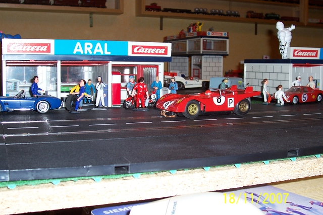 Toll Strecke, gefällt mir echt gut. Wie kommst Du denn bei der Tiefe an die Autos ran, wenn sie hinten abfliegen? Ich habe nämlich eigentlich das gleiche Problem mit den drei Wänden und habe daher nicht so tief gebaut. Hast Du die Randstreifen zum Teil selbst gebaut?