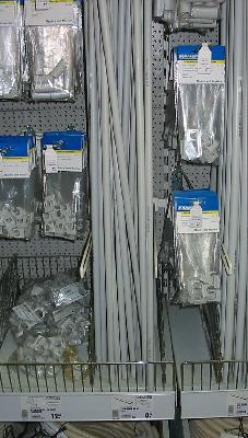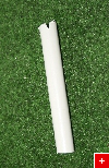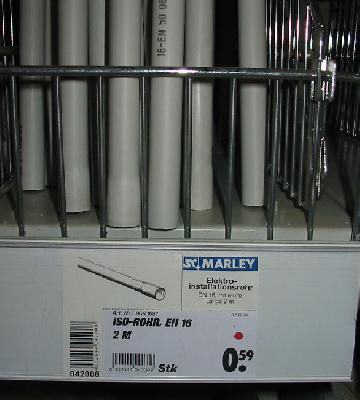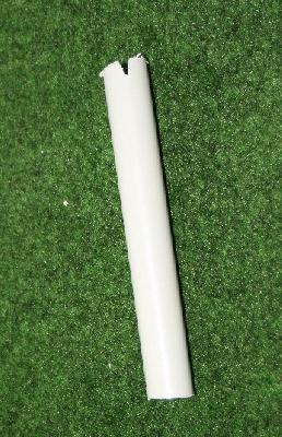 Ich hatte zu Hause noch ein paar Kabelrohr rumliegen (siehe Bild 1 und 2). Also wurden diese auf die entsprechende Länge zugesägt. Oben noch eine kleine Kerbe reingesägt (siehe Bild 3), damit die Schiene gut hält und fertig war die provisorische Stütze.