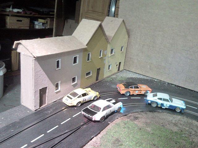 So in der Verlängerung der Start/Zielgeraden entsteht eine Ortsdurchfahrt. Dies soll eine Winzerdorf in der Pfalz 70`er Jahren darstellen. Hier möchte ich den ersten Bauabschnitt dokumentieren.