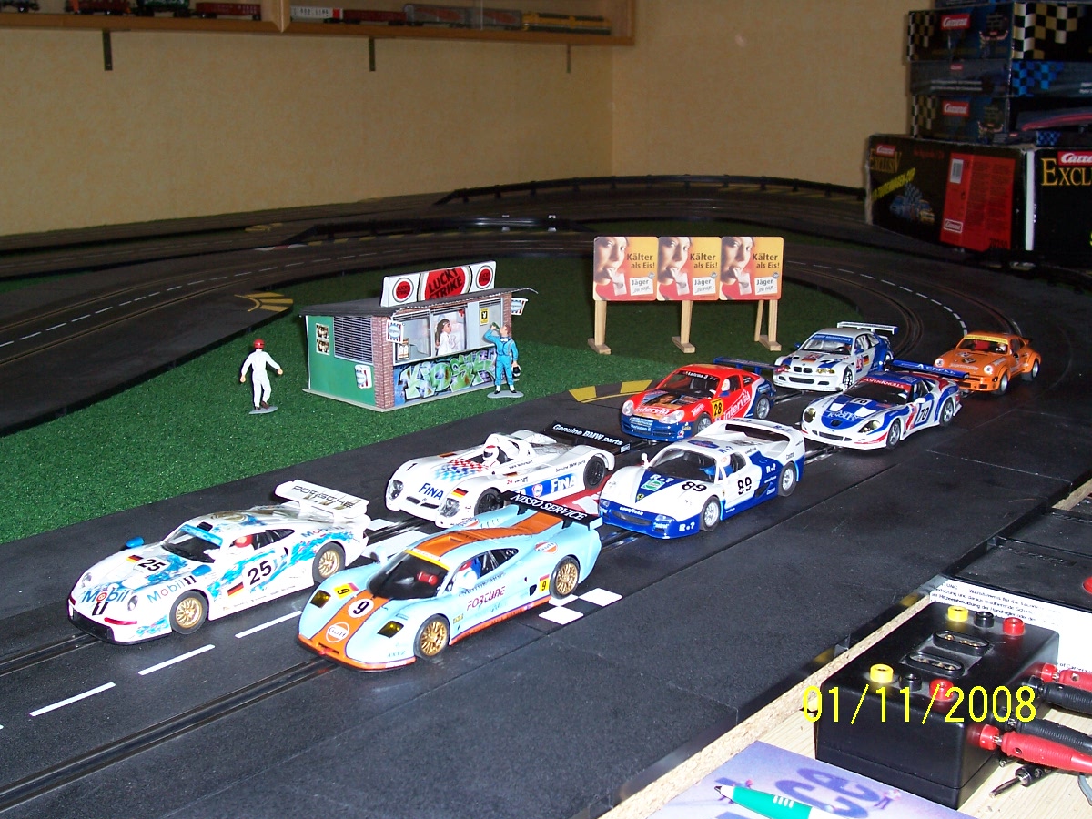 Als dann von Ninco der Golf rauskam, mußte der auch ins Haus. auf Bild 5 seht ihr ihn mit ein paar anderen Rally-Autos. Der Porsche fuhr übrigens wirklich 2001 bei der Deutschlandrally als Vorausfahrzeug.
