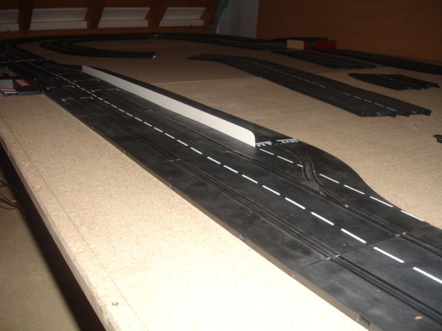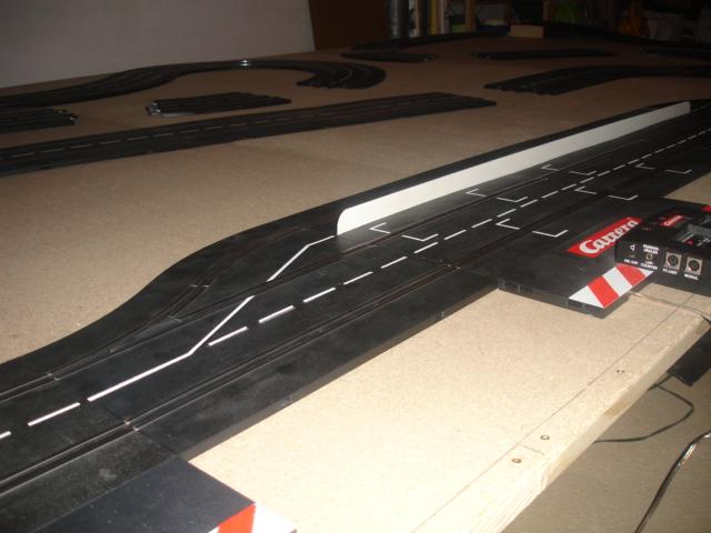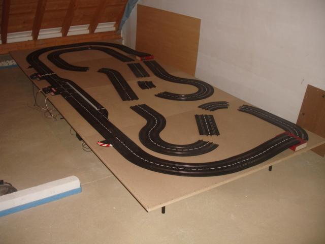 Bild 2 : Die Platte. Die Strecke wird einmal aufgebaut um zu testen. Es fehlen mir jedoch die 4/15 Kurven.