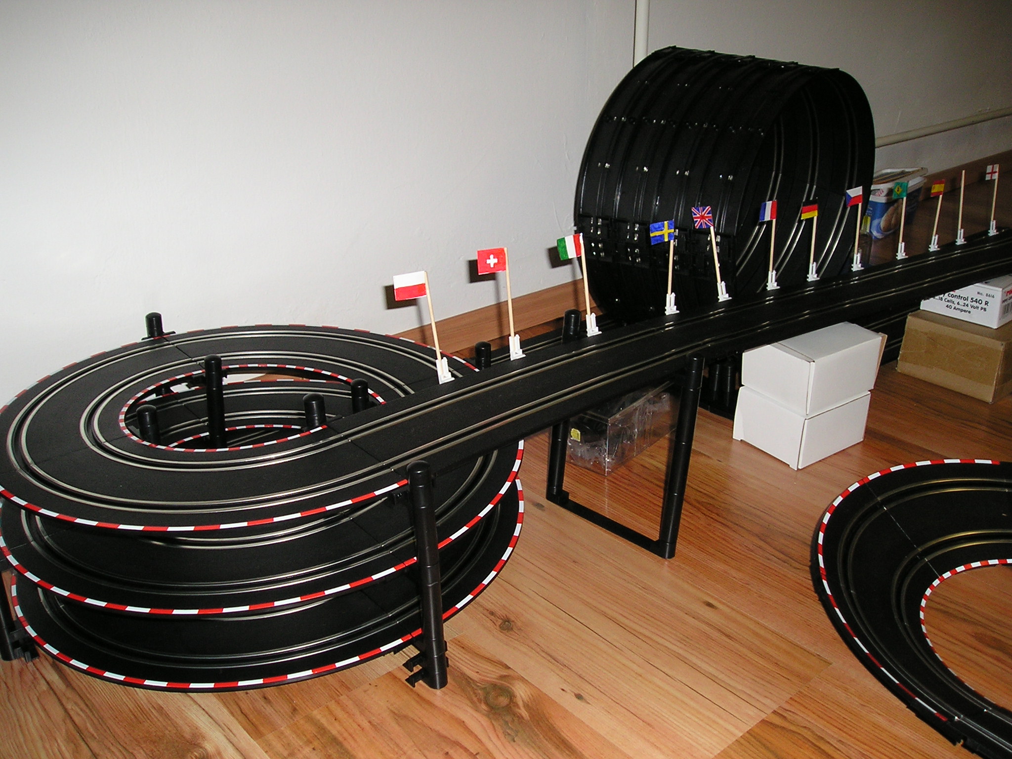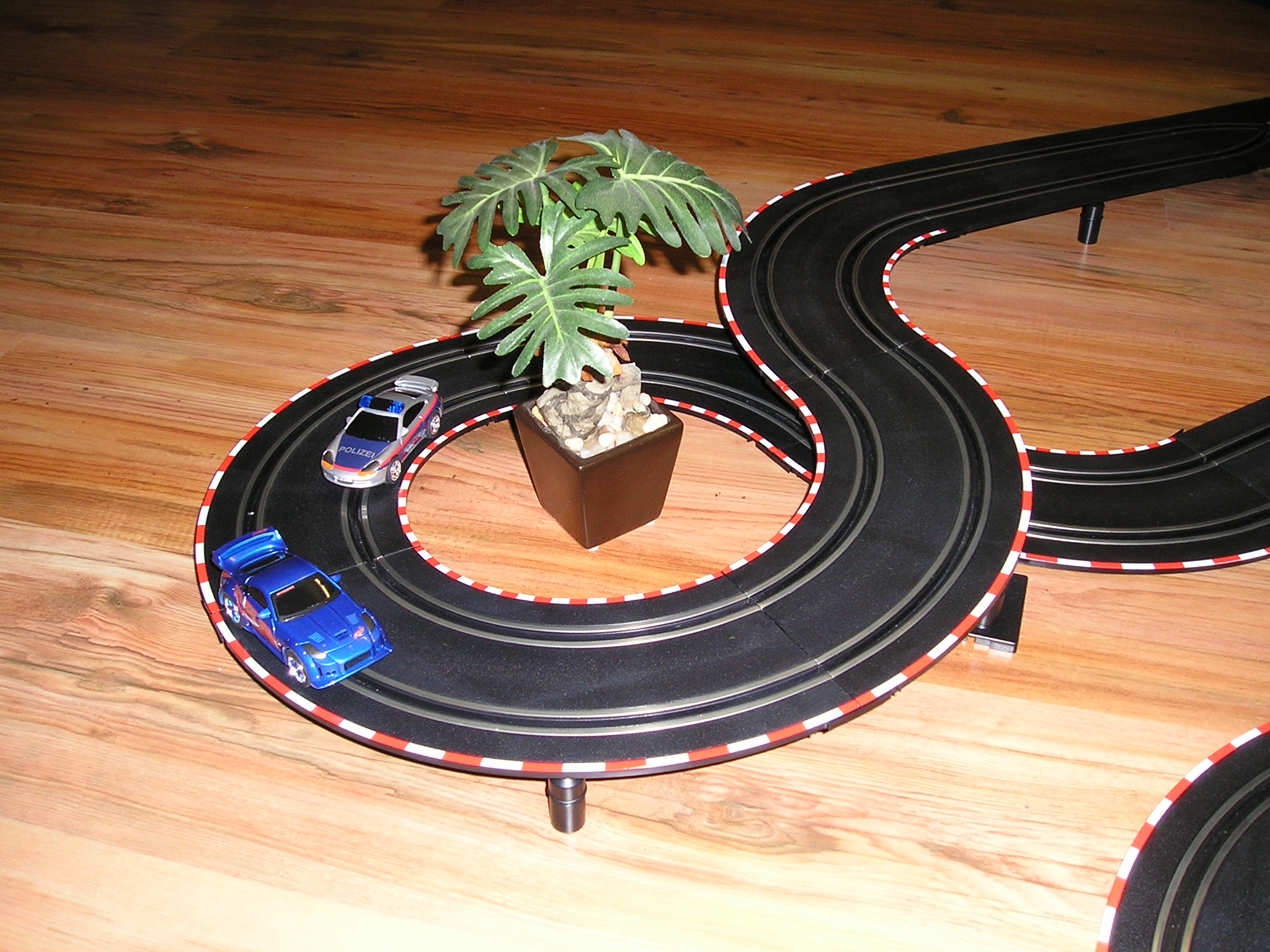 Ich habe eine 32m lange Carrera GO!!! Strecke mit: 2 Engstellen, 4 Spurwechselstücken, 2 Looping,
