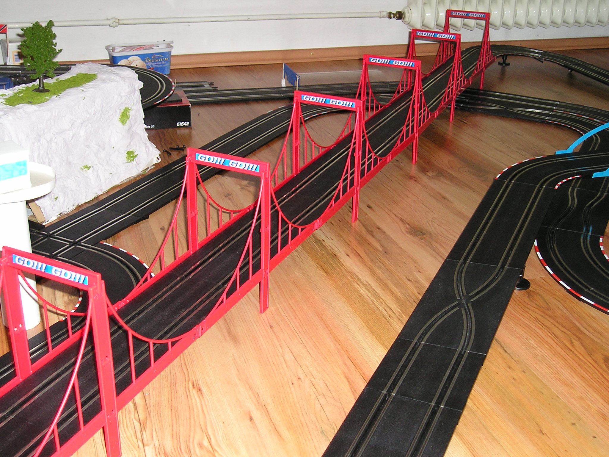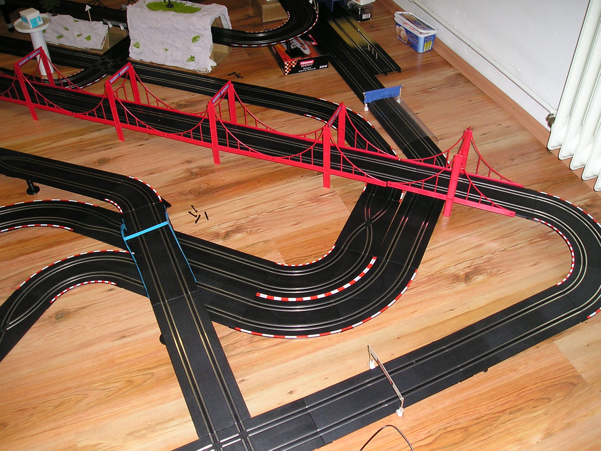 Ist ja schön so eine lange bahn zu haben, ehrlich gesagt es ist ein traum soviel platz zu haben. Kreuzungen und Looping sind ansichsache, denn mir gefallen sie nicht. habe leider auch nur platz für ne ca. 18m bahn. ist die bahn Fest oder auf und abbau?
