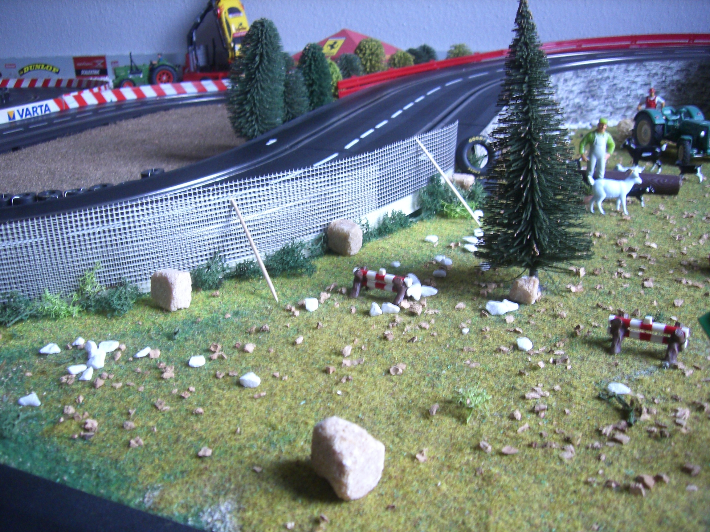 jmsl am 08.12.08 um 13:11respekt! Tolles Kiesbett (Idee muss ich aufgreifen - ich dachte ich nehme Aquariumsand - aber das wäre eine zu überlegende Alternative). Super finde ich, wie das Unkraut ans Fangnetz wächst. Genial auch Bild 5. Deine Autosammung ist wirklich krass. Streckentechnisch fehlen soch etwas unterschiedliche kombinierte Kurvenradien und Rndstreifen.