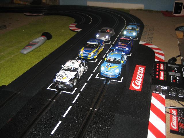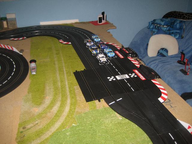 Letzte Woche habe ich eine Pitstoplane + Verlängerung, einen Rundenzähler, 2/30 Kurven, einen neuen Regler und einen BMW Z4 M Coupe für meinen Bruder bestellt. Gestern sind die Sachen angekommen und ich bin natürlich sofort mit meinem Bruder auf den Dachboden gestürmt und wir haben alles in unsere Bahn intigriert. Die Pitstoplane fängt vor der letzten Kurve an und hört vor der ersten wieder auf. Die 2 restlichen 2/30 Kurven finden sich in Kurve 2 wieder. Im kommenden Jahr habe ich mir vorgenommen mich intensiv mit der Deko zu beschäftigen, da das Streckenlayout sehr stimmig und gut zu fahren ist.