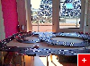 Hier ein paar Eindrücke von der Enstehung unserer Evo-Bahn. Da leider nicht genügend Platz vorhanden ist, müssen wir auf der Platte in angenehmer Höhe bauen. Die Maße sind 2,30 x 1,55 m.