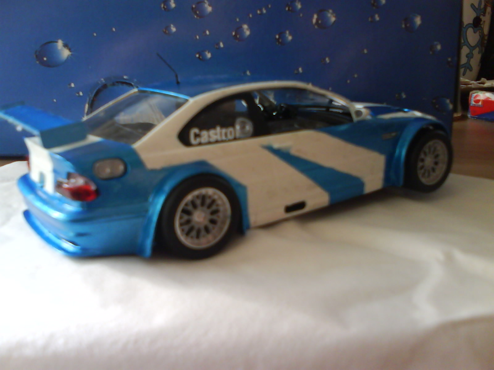 need for speed most wanted ist ein kultrennspiel! der bmw m3 gtr ist das legendäre auto allerzeiten! also probier ich zwei sachen zusammen zubringen die mir gefallen. computerspiele und die rennbahn. das lackieren ist das kritischte. hab es leider nicht beim ersten mal geschaft, dafür beim 2ten mal. ;-)hier sind die fakten für das auto/chassie: Hab mich momentan für slot-it boxer 24(rpm 24000). um die das drehmoment auf die bahn zu bekommen entschied ich mich für slot-it achsen(kit 07) und die dazu passende ortmann`s(typ 51b)