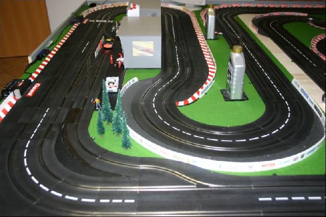 Sie ist noch nicht fertig (Rundenzähler soll zwischen die Boxengasse, Boxengasse noch länger, X Weiche in die Boxengasse usw.) und mehr Deko fehlt auch noch aber Rom ist ja auch nicht an einem Tag erbaut worden.