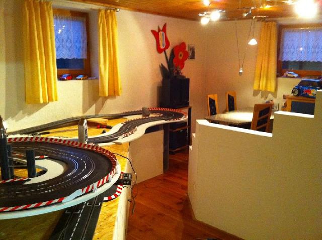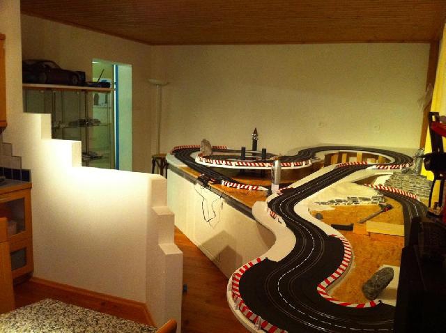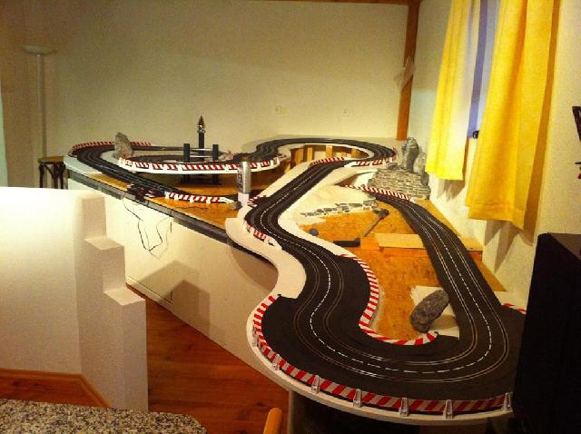 Das ist doch schon ein toller Anfang.Die Streckenführung ist auch nicht übel! (Als richtiger Carrera Fan könnte man an der Streckenführung immer noch was ändern!Das ist halt so....) Kommt da noch n`Boxengasse zu? Gruß Markus
