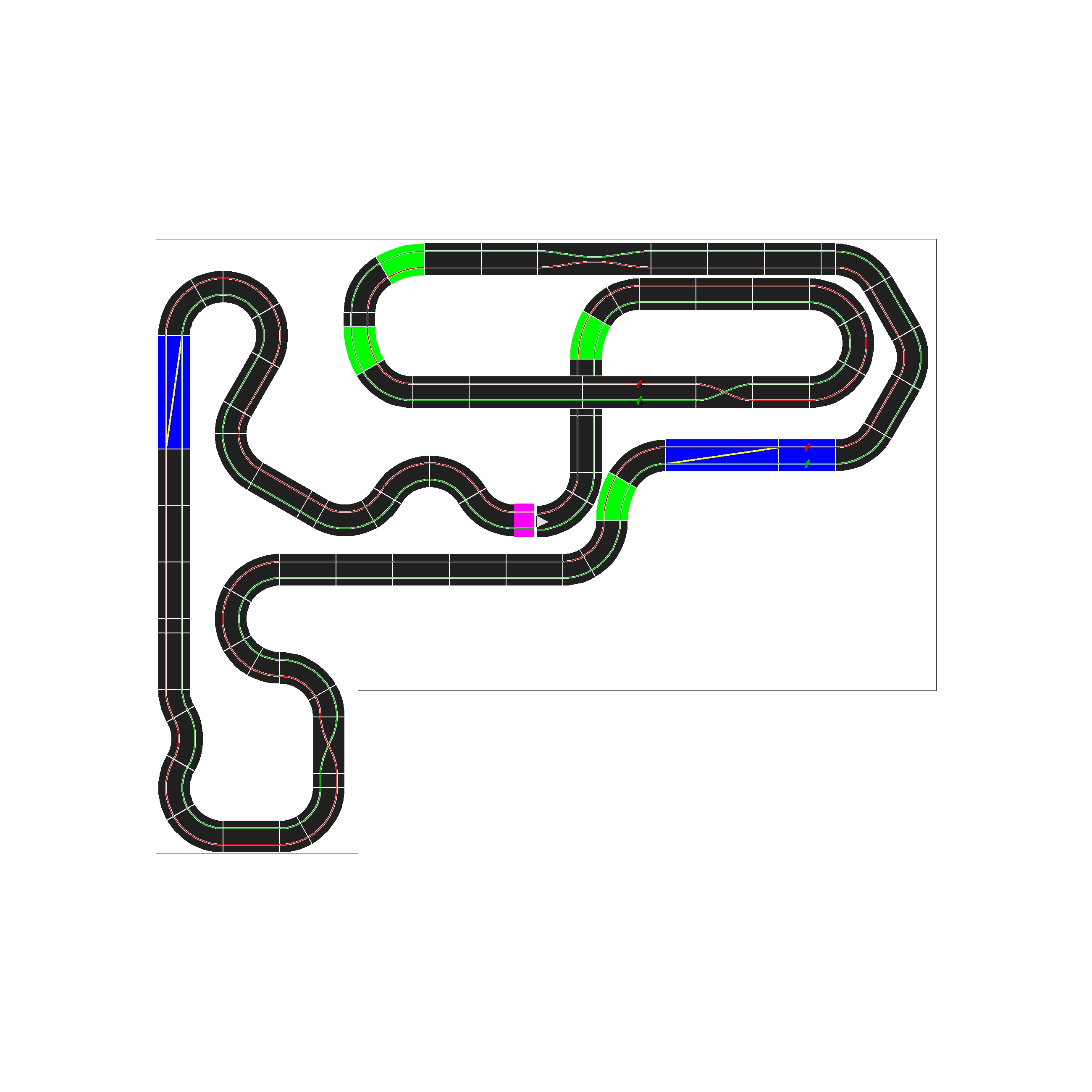 Hi, Schon mal über größere Kurvenradien nachgedacht? Sowas wie "Kurve 1-Gerade-Kurve1-Gerade" fährt sich nicht wirklich schön. Es gibt sowas wie "aufmachende" und "zumachende" Kurven. GANZ Wichtig: Randstreifen! Deine Strecke ist eine "innenliegende Acht", das heißt, dass die Außenbahn ca. 1,2m länger ist, als die Innenbahn. Das kann auch bei digitalen Bahnen schon Probleme machen. Wozu verbaust du Engstelle und Spurwechsel? Raus damit! Es mag dir Spaß machen - aber bei SO viel Platz könnte man auch eine richtig gute Bahn aufbauen... Gruß Jürgen