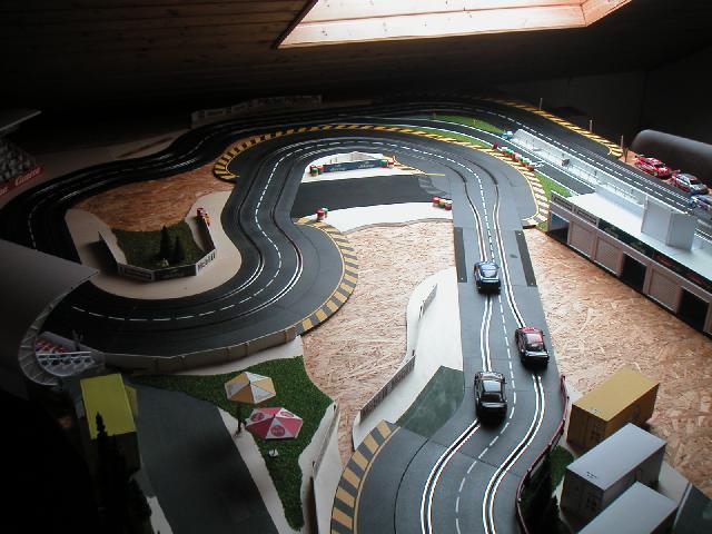 Ja, der Winter war lang und kalt.......... na und, was solls! Das hab ich mir natürlich auch gedacht und überlegt was man so alles noch an der eigenen Bahn ändern oder umgestalten kann. Gesagt, getan! Im Internet und im Club-Forum aufmerksam hingesehen viele Tipps und Anregungen aus meinem ersten Blog aufgeriffen und dann ran an`s Werk. Zuerst mal eine grobe Skizze gemacht welche Stellen auf- bzw umgebaut werden sollten. Rein in den Baumarkt und 8mm Sperrholz in Mengen eingekauft, dazu noch Sprühkleber, Streugras und einige Gläschen Tamiya XF Farben in verschiedenen Farbtönen geordert und ab geht`s! Nachdem dieser Grundstein gelegt war, ging es an die weiteren Details- sehr hilfreich war hier die Internetseite von ericberger, der sehr viele Ideen und was noch viel wichtiger ist, viele Vorlagen (speziell zum ausdrucken) hat. Danach habe ich im Internet und bei Ebay nach Zubehör wie Reifen, Begrünung usw. gesucht. Zuerst habe ich die Boxenmauer um 2 Elemente verlängerte und optisch verändert, etliche Bäume und Büsche wurden an den verschiedensten Stellen "gepflanzt". Eine Boxenmauer mit Zaun von Ninco wurde verbaut und das komplette Tribünenumfeld umgestaltet, Sonnenschirme, Sat- Schüsseln, Dixi-Klo`s und Container aus Pappe gebastelt und etliche Reifenstapel aufgestellt. Fahnen und einige Hinweiszeichen kamen als Dekoration hinzu. Die weissen Linien auf den Zufahrtsstrassen entstanden mit Hilfe eines Pritt- Correction- Tapes. Als letztes kam noch eine Engstelle hinzu, die durch eine enge Gerade im Eigenbau noch verlängert wurde. In absehbarer Zeit sollen die freien Stellen in der Mitte der Bahn noch mit Grasmatten gefüllt werden. Als Anhang einige Bilder nach der Umgestaltung.