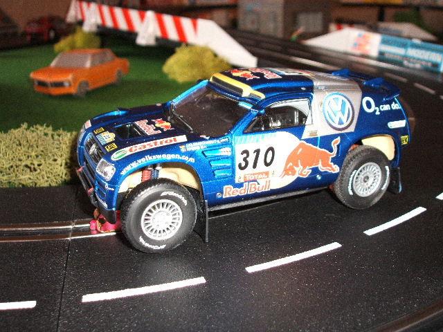 vestronx am 09.07.08 um 23:46...die Neue Bahn wird von der Streckenlänge nicht wirklich größer, aber ich kann sie breiter aufbauen und sie steht halt in Zukunft bei mir und nimmer bei der Schwiegermammi. ...Die Autos sind von Carrera, Revell, Fly, GB-Track und Ninco. Zwei Besonderheiten sind allerdings die Rally-Paris-Dakar-Fahrzeuge, der Race-Touareg und der Mitsubishi Pajero. Die beiden sind Eigenbauten auf Basis von Revell-Easy-Kit's (mit Original-Chassis). Grüße, Matze