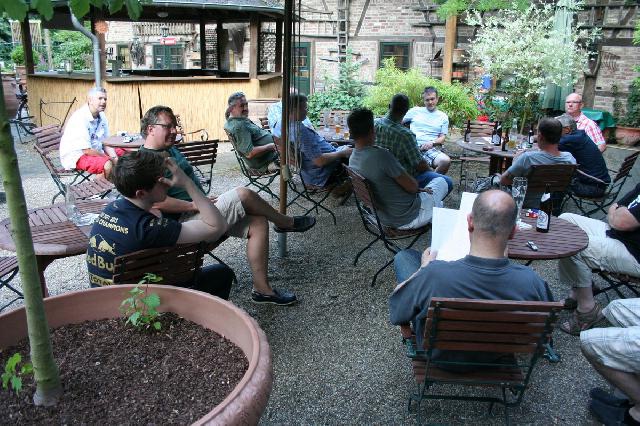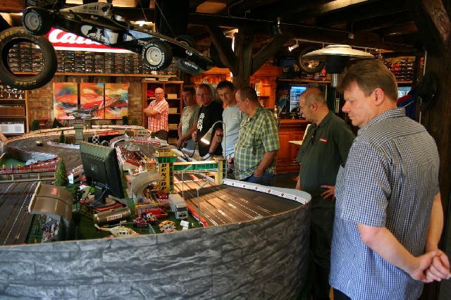 Schön wars wieder. Das Wetter konnte nicht besser sein, aureichend Schatten und eine leichte Brise haben für sehr angenehme Temperaturen gesorgt. Von "Profi-Trucker bis zu "Ich habe gar keine Bahn" sorgte eine bunte Gästemischung für viel Spaß, ausgelassene Stimmung, sinnfreie sowie ernsthafte Gespräche, spannende Rennen und herzliches Gelächter. Der Clou war mal wieder ein Teilnehmer, der das faslche Auto gefahren hat. Man sollte eben gelb von blau unterscheiden können (doppelvielgrins). Einen herzlichen Dank an Tim, den perfekten Grillmeister! Wie vertieft die Gespräche waren zeigt, dass beinahe glatt das Dessert vergessen worden wäre. Erst weit nach Mitternacht (gegen 2:00 Uhr) war der tolle Tag schließlich zu Ende.