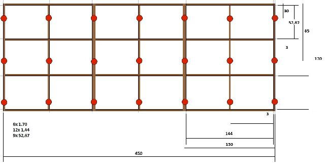 Ich bin davon ausgegangen, dass ich 3 Elemente á 1,50mx1,70m bauen werde.