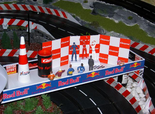 roman am 17.04.11 um 14:50Viele Details und saubere Arbeit. Ich habe deinen Blog gerade entdeckt, und er war sehr kurzweilig beim durchstöbern. Solche Berichte die vom Anfang des leeren Raumes bis zum aktuellen Stand Alles zeigen, liebe ich. Dann noch die vielen Details, man kann sich gar nicht satt sehen. Der Pistenbully im Berg, die Quads, die Ferrari-Ecke, die Autos im Presseturm, toller Landschaftsbau usw usw..... Grandios - Bewertung 10 mit Sternchen (10 gerade erfolgt, Sternchen leider nicht gefunden). Übrigens, ich kann IngoH nur beipflichten, die Spurwechsel sind bei mir auch rausgeflogen, fährt sich deutlich runder. Allerdings habe ich noch die Engstelle........mal sehen. Auf meiner Strecke, auch in einem Blog ersichtlich, siehst du verschiedene Gebäude von Carrera4fun. Sehr zu empfehlen. Billiges Baumaterial und viel Spass beim Bauen. Gruß