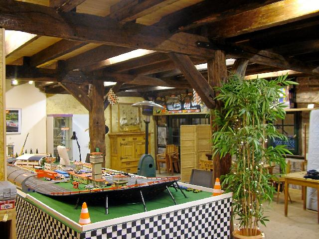 Der neue Bahnbereich wird schneller fertig als geplant. Der Maler ist Samstag durch, die Bahn läuft, erste Deko ist auch schon drin. Es gibt 2 Serviceplätze mit Anschlußschienen zum testen, eine kleine rustikale Sitzecke und viel heller als auf der Galerie in der großen Scheune ist es auch. Nächste Woche ist Feintuning angesagt, und dann gibt es mit Felix das Eröffnungsrennen.