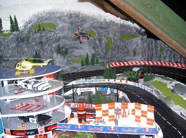 so nun ist wieder ein stück weiter.habe jetzt eine schalttafel angebracht.somit kann ich jetzt licht und auch schienenstücke für sich separat schalten.auch noch ein paar kleinigkeiten habe ich an der deko geändert.zwei red-bull flieger haben ein zuhause gefunden und auch ein boby-car.zwei,drei kleine gimmigs damit man wieder was zum hinschauen hat.aber schaut selber.hoffe es gefällt euch?
