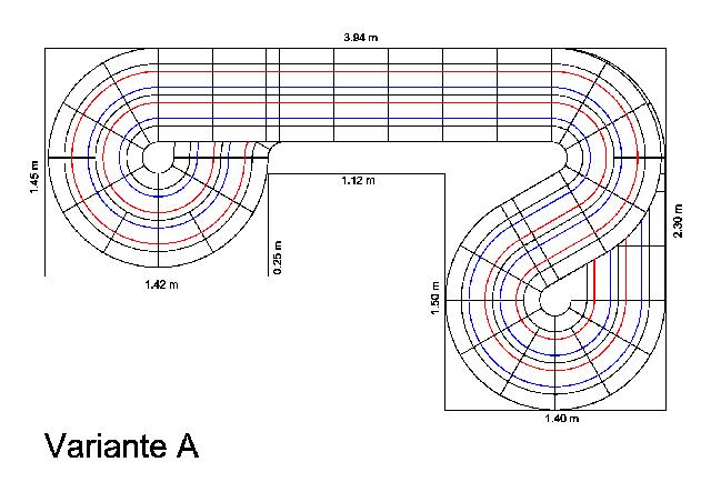 Nebst einer Geraden von 2.5 m und grossen Kurvenradien zum Driften, sind auch Kombinationen aus engen Kurvenradien verbaut.