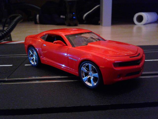 Hier ist der Camaro. Vom aussehen finde ich ihn einfach top. Nur die lampen scheinen ziemlich stark durch die karosse aber mit etwas schwarzer farbe von innen gehts. Auch vom fahrerischen finde ich ihn jetzt auch nicht so schlimm klar dass er jetzt kein rekord fahrzeug ist.