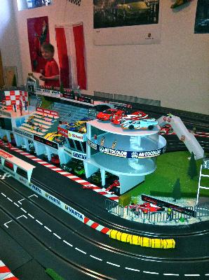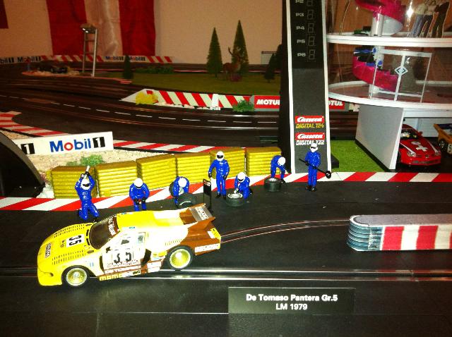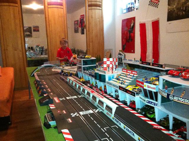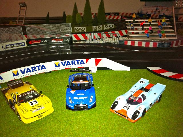 Ich habe jetzt ca. 6 Monate damit verbracht die CU von Carrera und Cockpit XP (meine Zeitnehmung) miteinander zu synchronisieren. Außerdem hatte Cockpit XP den Fehler, dass es abstürzte, wenn bei einem Rennen ein Auto das Ziel erreichte. Wie gesagt: diese Fehler beschäftigten mich sehr lange Zeit und waren sehr demotivierend. Aber heute habe ich sie gelöst: ich hatte den Carrera-Rundenzähler die ganze Zeit angesteckt und dass war sozusagen die Bremse im ganzen System. Eh klar! Wenn man zwei Zeitnehmungen hat kennt sich irgendeine davon irgendwann nicht mehr aus was jetzt wirklich gilt. Und seit heute funktionieren diese Dinge eben wieder und es passt erstmals wirklich alles auf der Strecke, bei der Zeitnehmung usw.. Außerdem habe ich mir wieder ein neues Auto gegönnt. Ein geupgradeten De Tomaso Pantera mit Licht und Digital Decoder und ohne Heckmagnet (Foto ist dabei). Das Gerät driftet wie irre. Nichts zum Rundenrekord fahren - aber extrem spaßig für Zwischendurch und mit entsprechenden Gegner (umgebauter Fly Porsche 917 K). Neue Streckenbilder hänge ich auch an, wobei auf einem der neue De Tomaso zu sehen ist, in der Mitte der Bahnrekordhalter und ganz rechts die Schnecke am Circuit (Fly 917 K).