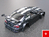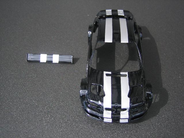 Anschließend habe ich drei Schichten schwarze Farbe aufgesprüht. Nachdem die Farbe getrocknet war, konnte man die Masking tape Sreifen entfernen. Nach ein Paar Ausbesserungen habe ich noch mehrere Schichten Klarlack mit Perleffekt aufgesprüht und schon war die Karosserie fertig lackiert (siehe Bild 3).