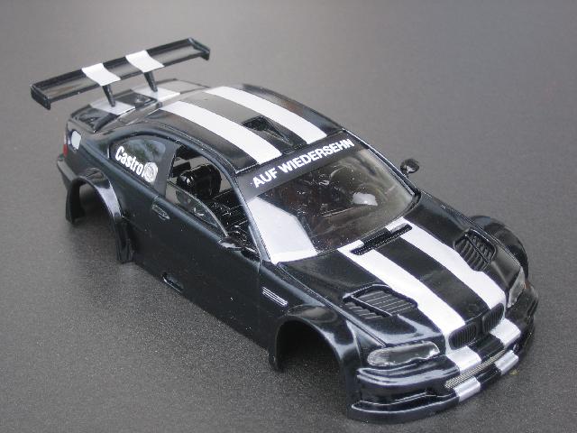 Für mein Modell habe ich eine unlackierte Racing BMW M3 GTR Karosserie in 1/32 von Fly bestellt. Kostet: 14,95 .