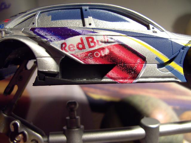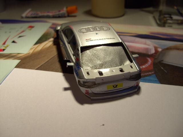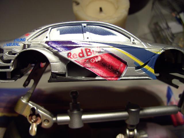 oder so ähnlich! Das Projekt eines Red Bull Cola Audi A4 von Martin Tomczyk stand schon lange auf meiner Liste. Im letzten Jahr hatte ich Decals von pattosplace erworben, aber nach dem genaueren Betrachten wurde mir schnell klar, dass da zu viele Ungenauigkeiten in der Ausführung waren. Nach langer Bildersuche hatte ich wenigstens ein paar Bilder, mit denen der Grafiker etwas anfangen konnte. Nachdem auch Christian Erkens, hier aus dem Club, wegen eines Red Bulls angefragt hatte, hat mich der Wahnsinn geritten und ich habe 2 Stück parallel gefertigt. Am Anfang kam wie immer das komplette zerlegen der Autos und danach musste die Farbe und die Decals mit Carson Paintkiller runter. Im Anschluss wurden die Scheibenöffnungen von innen zugeklebt, die Öffnung für den alten Heckflügel verklebt, verspachtelt und verschliffen. Im Anschuß wurde erst grundiert und dann kam Tamiya TS 76 Mica- Silber drauf. Nach ca. 2 Tagen Trockenzeit kamen dann die verschiedenen Streifen nach und nach drauf, jeder Farbstreifen wurde für sich abgeklebt und dann lackiert. Verwendet wurde hier Tamiya XF 8 Flat Blue, Tamiya XF Flat Yellow und für die 2010er Version ein aufgehelltes XF 8 für den unteren Streifen. Die Streifen sind bei beiden verschieden, da ich für mich die 2009 Version vom Norisring ohne vordere Flaps haben wollte und Christian wollte die 2010er Version. In den Trockenphasen habe ich die neuen Streben gebaut und an den Heckflügel angepasst. Die Heckflügel sind vom 2009er Scheider Audi, nachdem diese mit Tamiya XF8 neu lackiert waren, kamen die Decals drauf und dann wurden die Streben mit dem Flügel und einem heißen Schraubendreher verschweißt. Dann ging es an die Decals, die wie immer von decalprint kamen, zuerst habe ich alle Decals auf Heck Dach und C- Säule aufgebracht, dann kamen die Dosen dran, dazu habe ich mir eine Vorlage aus Papier geschnitten und dann das Decal so geschnitten wie es sein soll. Es wurde komplett auf Karo und Wanne aufgebracht und mit jeder Menge Mr. Mark Softer gebadet, damit es sich gut in die Vertiefungen und um die Rundungen legt, die Fuge zwischen Karo und Wanne wurde nach dem antrocknen mit einem Skalpell eingeschnitten, sowie die Ecke am Auspuff rausgeschnitten und mit Weichmacher um die Ecken gelegt. Leider ging es nicht ganz ohne minimale Falten (z.B. am Türgriff). Für jedes Dosendecal habe ich ca. 1h gebraucht bis es richtig gepasst hat. Später kamen dann die Schriftzüge im vorderen Bereich drauf, die auf oder an den Dosen liegen, auf die Autos. Die Versionen 2009 und 2010 unterscheiden sich nur durch einige Schriftzüge und die Streifen, sonst ist alles gleich. Nach 2 Tagen Trockenzeit habe ich dann die Autos mit 8 dünnen Klarlackschichten eingenebelt. Nachdem der Klarlack trocken war, habe ich die Autos wieder zusammengesetzt. Zubehörteile wie Spiegel in Gelb und das neue vordere Nummernschild wurden auch noch angebracht, sowie neue Schilder für die Box gedruckt. Freue mich auf Eure Kommentare und Meinungen. Gruß Berthold