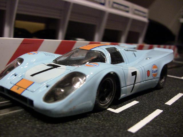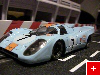 Dann ging´s an den 917er . Umbau wie gehabt. Problemlos - aber der Innenausbau muss raus. Obwohl das Fahrzeug komplett anders aufgebaut ist erreicht man auch hier genau 73 Gramm nach dem Umbau. Der Radstand ist viel kleiner als beim Mosler und das Teil hat Profilreifen. Hm . . ich bin skeptisch. Tja. . .nach der ersten Runde war nix mehr mit Skepsis. Der 917er fährt absolut genial. Sehr Spurstabil der genaues Driften. Eigentlich genau wie der Mosler - absolut vergleichbar. Einziger Unterschied: Der 917er hat nur" einen 20tausender Motor verbaut damit hängt er weniger aggressiv am Gas.