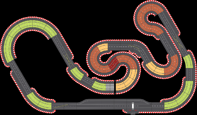 Auf jeden Fall sollte die Bahn nicht länger als 20 m werden, damit man auch nochmal die Chance hat, Mitfahrern zu begegnen. Das ist meiner Mainung nach umso wichtiger, als das man mit Boxenstrategien bei sehr langen Bahnen zumeist allein für sich unterwegs ist.