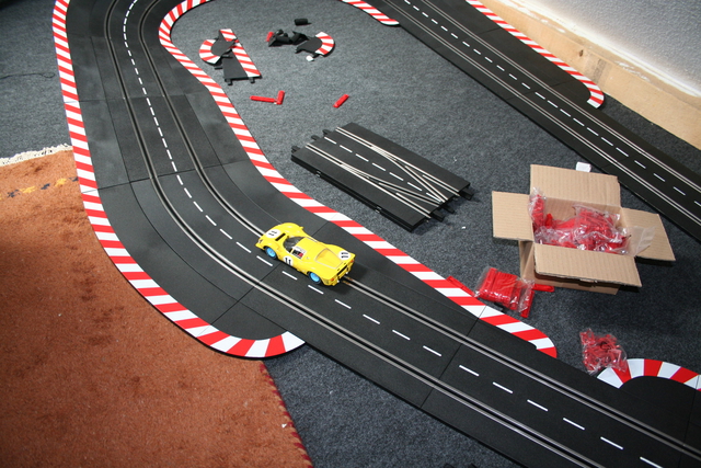 wenn die Strecke komplett aufgebaut ist und auch überall Strom ankommt....:-) werde ich mal aus meinen Corvetten die Magneten ausbauen.Mal sehen was das bringt. Randstreifen packe ich dann mal auch genügend rein. Ich hab ja einen großen Fundus. Werde dann auch endlich mal meine RSM ausprobieren, die schon 6 monde im Karton verweilt und dann mal den rundlauf etc. überprüfen. Ich habe mir überlegt,ob ich die erste1/60 er Kombination nach der 3/30Kurve mit 2/30 als geschlossene Kurve ausführe... was meint ihr?