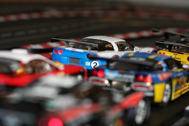 da ich irgendwie lieber etwas anderes gemacht habe, als den Blog zu füllen ( wahrscheinlich zum Ärger einiger Clubmitglieder.....) Mittlerweile habe ich eine zweite Pitstop eingebaut und noch ein wenig die Gerade verlängert. Die große Gerade zählt nun 19 Schienen. Die Steilkurve 2 habe ich gegen normale Kurven 2 getauscht. Das macht nun mehr Spass, da man jetzt mit dem Gasgeben ein wenig aufpassen muss. Vorher konnte man einfach Vollgas geben ab der Schikane und auf die lange Gerade durchrasen. Das war irgendwie Langweilig. Eine weitere besonderheit habe ich vor. Ich habe mir, aufgrund der bilder von Herbiss Block nun auch zwei Kurven" nur einer kommt durch" in 1/60 bei Pitslot bestellt. Diemöchte ich dann in das Infield packen. Ich bin mal gespannt wie die in "Life" aussehen. Die schnellsten Runden auf der Bahn liegen derzeit so um 10,2 sec. mit den C6 und Tuningreifen. Das variiert immer ein wenig. Ich nehme an, das liegt auch an den jeweiligen unterschiedlichen Temperaturen. So, beim nächsten mal, packe ich ein paar neue Fotos mit rein Euer Klaus