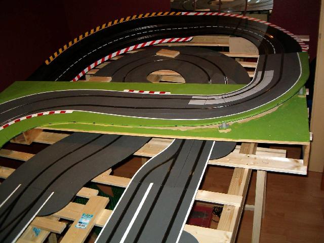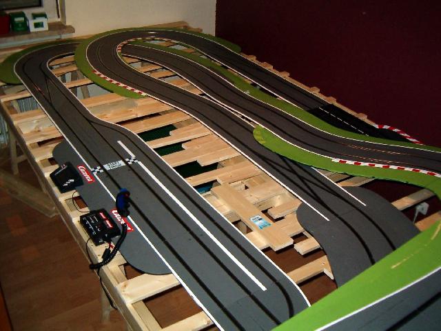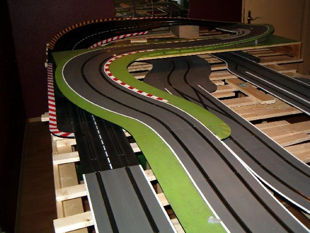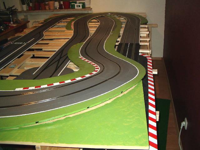 ... mit dem Bahnaufbau. Im Moment bin ich dabei, die Bahn (spannungsfrei) auszurichten und die Befestigungspunkte festzulegen. Danach werden die lose verlegten Latten befestigt und die Auf und Abfahrten gebaut. Die große Brücke (war bisher nur provisorisch) wird auch noch mal anders gestaltet...