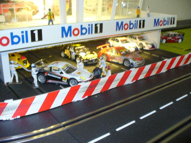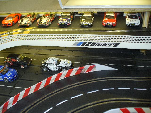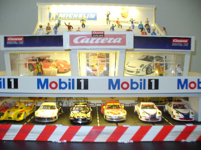 Master Driver 1:43 am 05.11.10 um 14:46Hallo Markus, Die Boxengasse ist auf dem ersten Bild zu erkennen und das Parkhaus soll unser " Audicenter " werden. Ist noch nicht fertig. Die Parkmöglichkeiten usw. haben wir aus alten Universal- und Goschienen gebaut, die stellenweise mit Strom versorgt werden, damit Polizei, Safetycar usw auch beim Parken beleuchtet sind. Der "Porsche-Center" haben wir aus Fahrzeugboxen und alten Schrankrückwänden gebaut. Und die Beleuchtung ist aus LED.-Leisten (Baumarkt), die man normalerweise für Vitrinen usw verwendet. Gruß Gerd