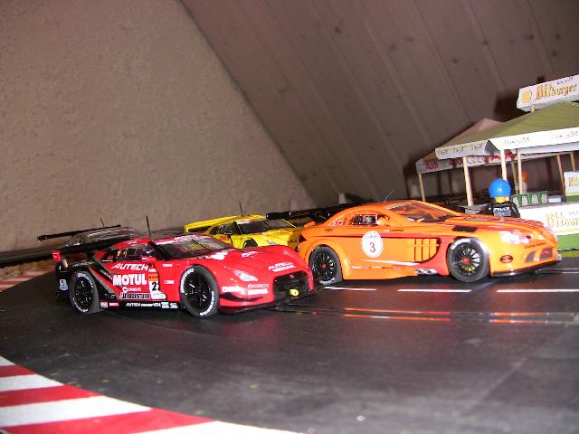 .... getesteten Exemplare befinden sich auch in meinem Besitz .... und ich kann Deinen Bericht nur unterschreiben. Geschmaklich liegen wir auf einer Wellenlänge. The first ist bei mir auch der rote Nissan, gefolgt vom gelben, dann der SLR 722 - jetzt kommt ein kleines Loch, und dann erst der orange SLR. Diesem Fahrzeug hätte eine bessere Lackierung sehr gut getan. Das orange sieht wirklich aus wie ein 5 Euro Spielzeugauto aus dem Handel. Was das Fahrverhalten angeht sind die 4 deutlich besser zu beherrschen als die DTM´s .... aber mit meinem Capri fahre ich bis jetzt immer noch die schnellsten Rundenzeiten.