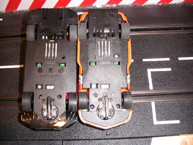 Die Fahrzeuge berechen zwar recht heftig mit den Carrerareifen in den Kurven aus, sind aber immer kontrollierbar und fallen dank niedrigem Schwerpunkt und vorbildlichem Driftwinkel (Bild 6) nicht aus dem Slot. Mit beiden Fahrzeugen konnte identische Rundenzeiten erzielt werden. Werde bei Gelegenheit versuchen im Heckbereich etwas Blei zu platzieren um das Ausbrechen des Fahrzeuges beim Beschleunigen etwas zu reduzierenobwohl evtl. macht gerade das den absoluten Fahrspaß aus.