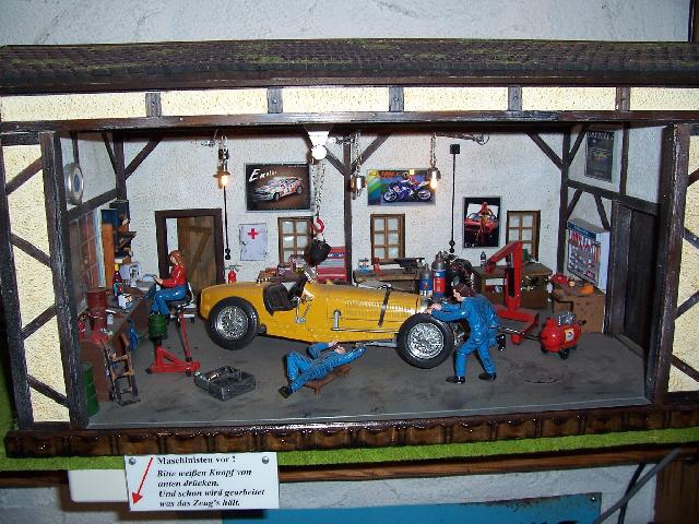 Habe aber auch in den Vitrinen ein paar Slotcars entdeckt. Und das Werkstattdiorama ist auch nett.