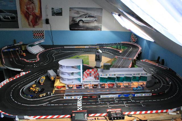 Hallo Leute, letzte Woche sind wir leider umgezogen und so musst ich auch meine Bahn auf dem Dachboden abbauen. Schweren Herzens habe ich letzte Woche meine Bahn abgebaut und alles in Kartons verpackt. Zum Glück haben wir in unserer Neuen Wohnung einen Großen Kellerraum, welcher vorher als "Party-Keller" genutzt wurde. Also habe ich mich direkt an die Arbeit gemacht und eine neue Strecke entworfen. Mehr dazu und zu meiner Neuen Strecke, die ich CentrO. Ring nennen werde gibt es die Tage in einem Neuen Blog. Anbei habe ich noch ein paar Fotos des CentrO. Circuit.