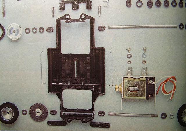 Foto 8: Bausatzchassis mit Gußfelgen und rotem Motor
