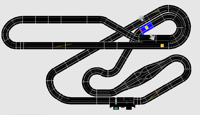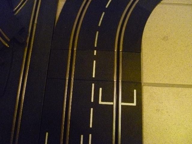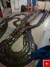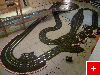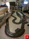 Ich hab einfach drauf los gebaut und das kam dabei raus, die Bahn ist knapp 26 Meter lang und mit zwei Zusatzeinspeisungen versehen. Leider war auch wieder Pfusch im Spiel und am Ende war die Bahn leicht verzogen. Es fehlten zwei kleine Spalte zum Schließen der Bahn. Dazu hab ich eine alte Gerade in eine 1/5 und eine 3/4 - Gerade zersägt und jetzt passts halbwegs. :)