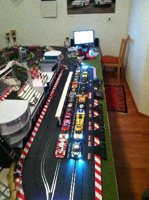 Im Anhang die Ergebnisse der ersten (insgesamt) zwei Baujahre. Details: Carrera Digital 132, Streckenmaße 461 x 203 cm, Streckenlänge 20,41 m, Handregler: Carrera Wireless x 4, 15 Fahrzeuge (McLaren M20, Audi A4 (O. Jarvis, Kristensen), Mercedes C-Klasse (Susie Stoddart), Porsche 917/30 Sunoco, Nissan GT-R 500, BMW Z4, Ferrari F10 (Alonso), Vodafone McLaren Mercedes (Button), Porsche GT3 (PetFoods), Porsche 911, Morgan Aeromax (grün, silber), Morgan 8 Plus (grün, türkis). 4 Driver Displays, 1 Position Tower, Carrera Startlight, PC-Unit (aber mit Cockpit XP (entschuldigung ;-)), 3 Grand Stands Tribünen, 8 Boxen, Presseturm, Videowall etc..