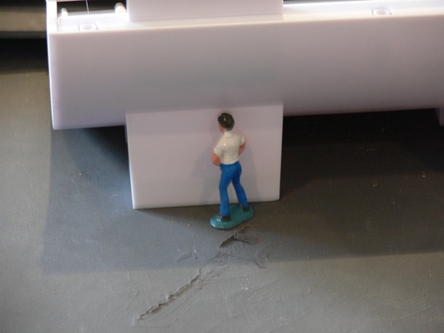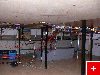 Netzteile, Compi, Hauptschalter, Chaostaste und Überbrückungsschalter sind in einem Rennleitungsturm zusammengefasst, auch auf einem der Bilder zu sehen. Die Dekoration insgesamt ist noch nicht fertig und endgültig, der einzelne Herr unter der Tribüne (Idee von meinem Sohn) bleibt aber.