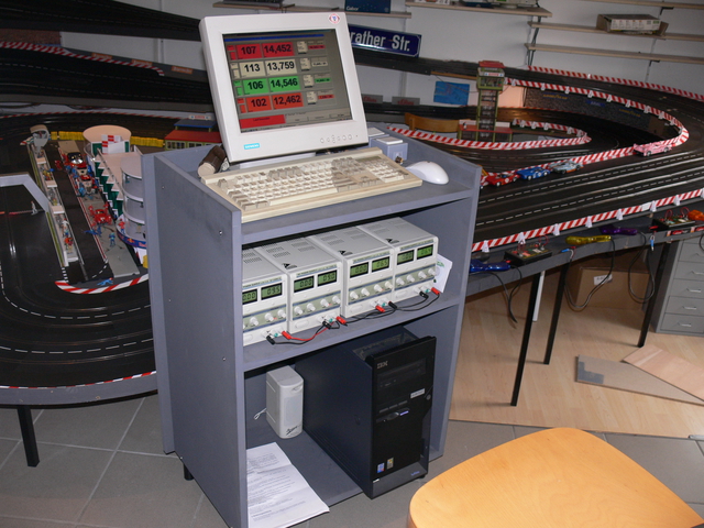 Zeitnahme erfolgt über eine Windows-Bepfe mit separater Bahnstromabschaltung, Chaostaste und Überbrückung, falls man einfach so ohne Zeitnahme fahren will.