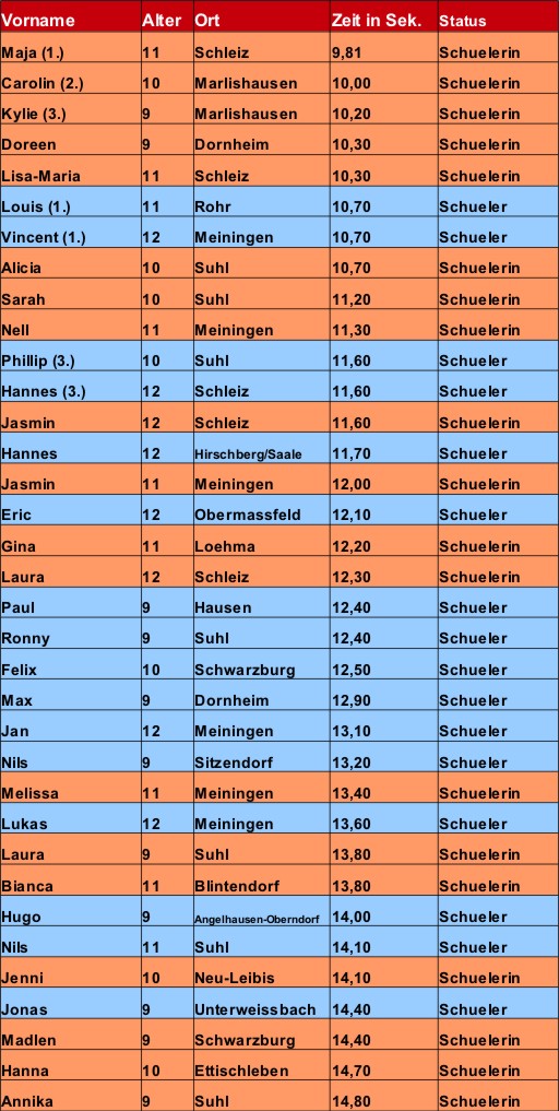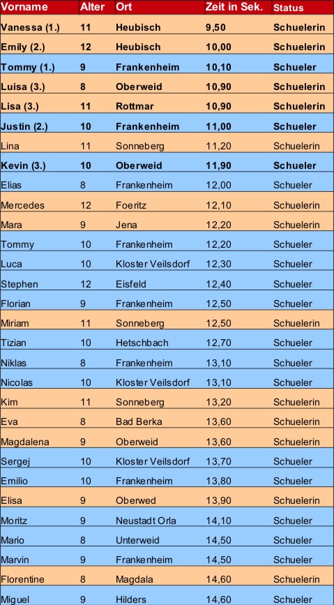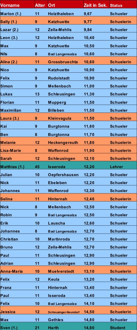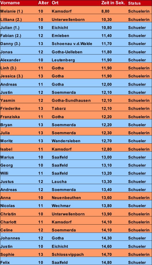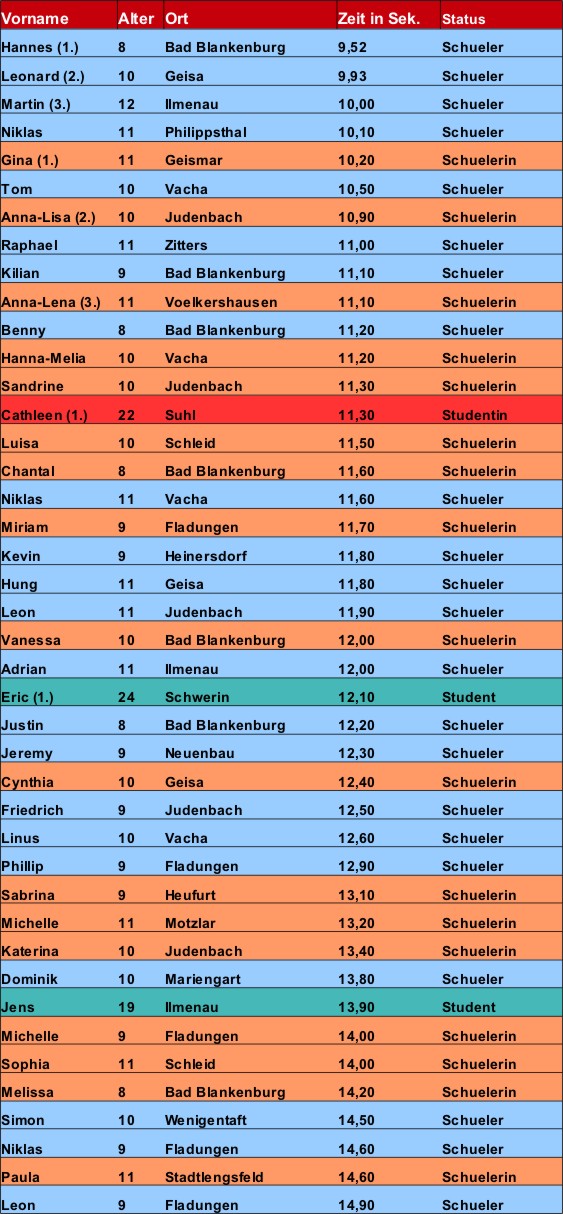 Die Top Ergebnisse (schnellste Runde unter 15 Sekunden)