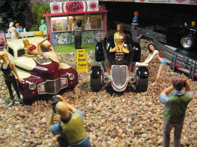 Hab mal meine Figuren und Hot Rods auf der Bahn aufgebaut und ein paar Fotos gemacht.