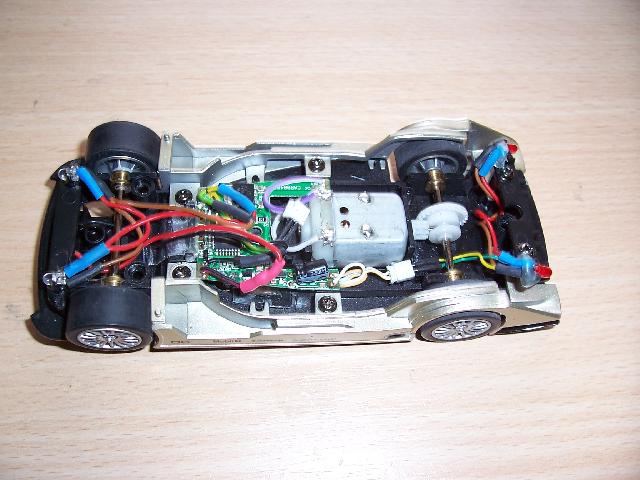 Als erstes die bestehende Elektrik (Bild1) und der vodere Schiebemagnet raus, dann das Chassi angepasst (Bild2) und den Dekoder eingesetzt (Bild3&4). Nachdem dann die LED's ab Platzt und alles wieder angeschloßen ist (Bild5), noch ein kurzer Funktionstest durchgeführt und ab gehts zum Gruppenfoto.