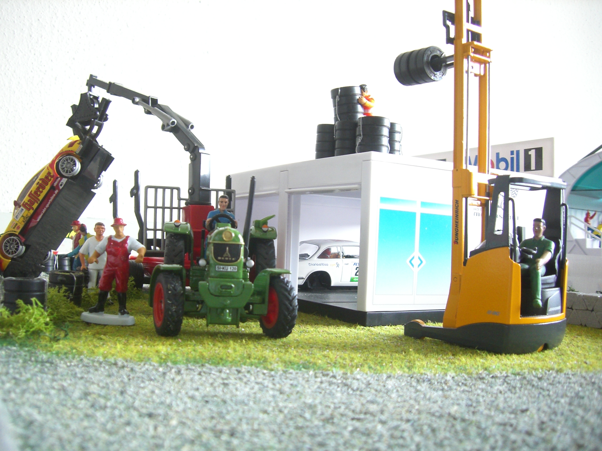 Größe der Grundplatte eine schöne Strecke. Wo hast Du die Motorräder her ? In welchem Maßstab sind die ? Ansonsten auch ein schöne Deko, gelungenes Gesamtbild. Gruß, Thomas